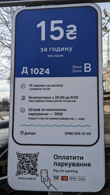 С начала апреля на большинстве парковок в центре Днепра появились новые информационные таблички. Они содержат всю необходимую информацию о парковке: стоимость, время работы, время бесплатной парковки и т.д. Также на табличках есть QR-код для оплаты за парковку.