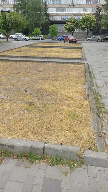 «Наслідки варварського покосу трави в Дніпрі вже можно побачити не тільки на житлових масивах а навіть на Січеславській набережній в центрі міста.Вандали з бензокосарками знищують трав'яний газон під корінь. В місцях де немає автоматичного полива трава вже не відновиться та до серпня місяця нічого крім амброзії не виросте.