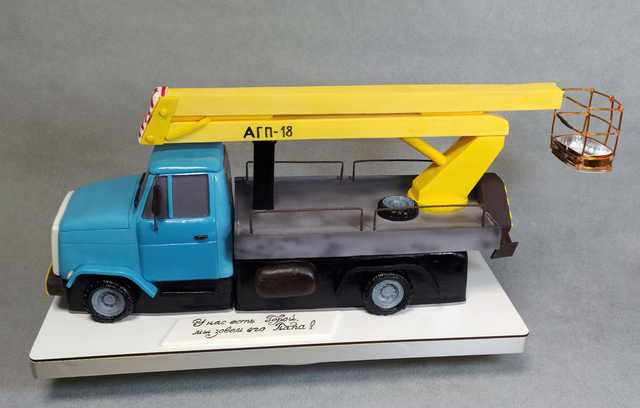 Теперь это «автопредприятие» пополнилось еще одним экспонатом – тортом-автовышкой на базе машины ЗИЛ.