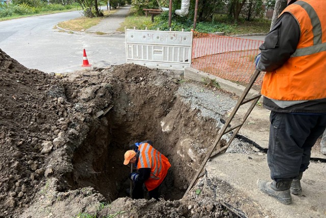 Работает одна аварийная бригада и две единицы спецтехники. Работы планируется завершить к концу этой недели, на данном этапе работы производятся без отключения водоснабжения.