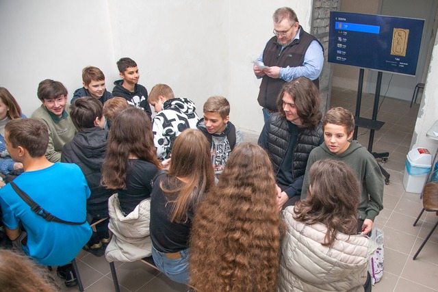 Завершився захід грою "Що? Де? Коли?". Запитання до команд ліцеїстів про найзагадковіший стародавній час підготував науковий співробітник музею Сергій Володимирович Головій. Переможцем стала команда ліцеїстів 8-В класу, за що кожен учень отримав у подарунок пам'ятний значок від музею.