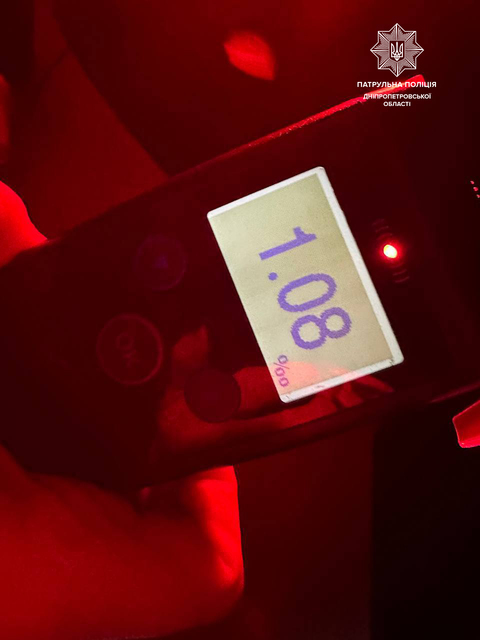 Результат освідування виявився позитивним — 1,08 проміле алкоголю в крові.