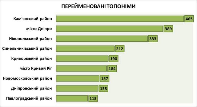 Не намного отстал Никопольский район с 333 переименованиями.