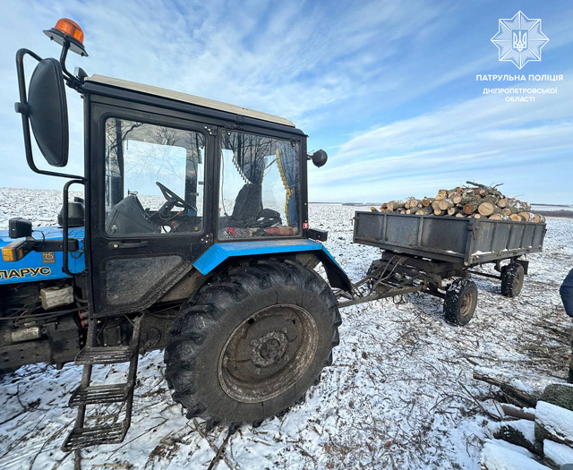 На днях во время патрулирования в Новомосковском районе в лесополосе недалеко от села Надеждовка полицейские роты по обслуживанию водных объектов обнаружили 3-х граждан, которые грузили свежеспиленную древесину в трактор.