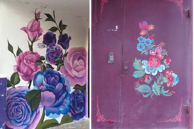 А тем временем на этом жилмассиве жильцы создали еще несколько красочных панно на своих подъездах.