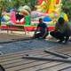 Также кипит работа по замене деревянных дорожек в другой части парка.