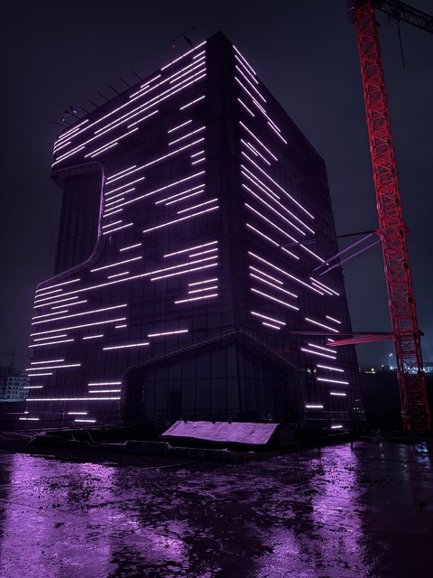 Для цього проєкту ми створили унікальні світильники, розроблені спеціально під архітектуру TBC: від плат і світлодіодів до профілів і роз'ємів. Новий протокол управління забезпечує швидкість передачі даних і частоту кадрів 60 fps. Фасад будівлі складний і технологічний, з панелями, виготовленими у Німеччині спеціально для наших світильників. Ми продумали технічне завдання для пазів під світильники, кабелі та кріплення.
