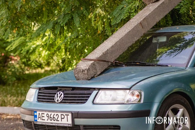 20 июня в Днепре бушевал сильный ветер. В результате непогоды в городе падали деревья на дороги, обваливались фасады и бетонные столбы. Однако через три дня после непогоды бетонную опору до сих пор не убрали со стоящей в парковочной зоне припаркованной машины.