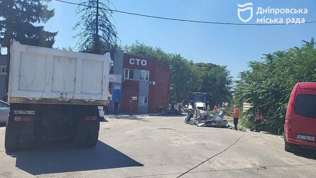 Коммунальные службы города уже приступили к уборке обломков и мусора после очередного ракетного обстрела Днепра.