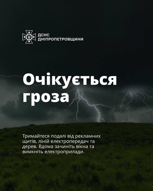 В ближайшее время с сохранением до конца дня 15 июля местами по Днепропетровской области и в городе Днепр ожидается гроза.