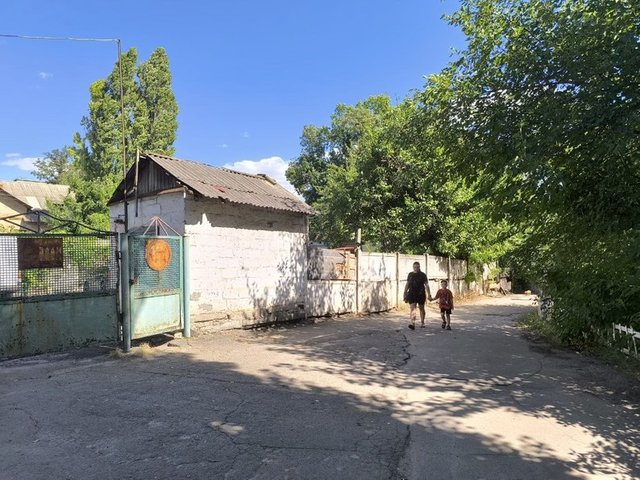 Этот железобетонный забор вокруг производственных помещений стоит здесь десятилетиями, рассказывает местная жительница Наталья.