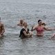 Перед купанием участники мероприятия провели всеобщую разминку для разогрева тела и символическое посвящение «новеньких» в моржи.