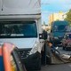 Троллейбус с места аварии уже уехал, а грузовик сдвинули в правую полосу. Движение затруднено, однако пробки нет.