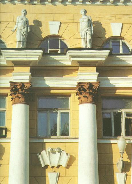 Вместо квадриги появились одна муза на фронтоне и три – в интерьере театра им. Шевченко. С определением стиля затрудняюсь - скорее всего, реализм».