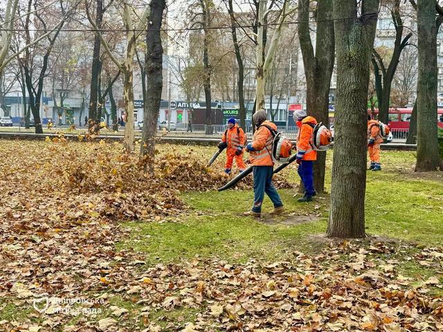 В Днепре сухие опавшие листья в парках, скверах, зеленых зонах убирают специальными воздуходувками. Они значительно ускоряют процесс. Сегодня, 28 ноября, бригады "Горзеленстроя" работают и в сквере Героев.