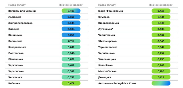 Министерство цифровой трансформации Украины обнародовало обновленный Индекс цифровой трансформации регионов, по которому Днепропетровская область заняла второе место с показателем 0,844 балла. В целом средний уровень цифровой трансформации в стране составил 0,497 балла.