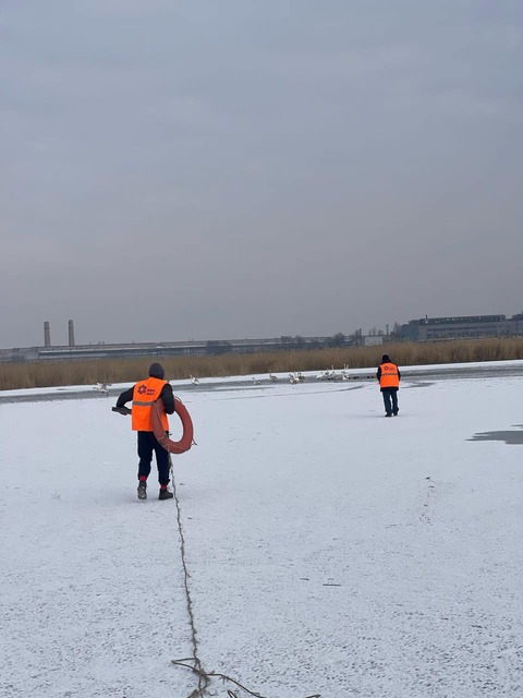 Зробивши лунки в льоду, вони дозволили лебедям повернутися до води, а також подбали про їхнє харчування, щоб птахи могли отримати необхідні сили.