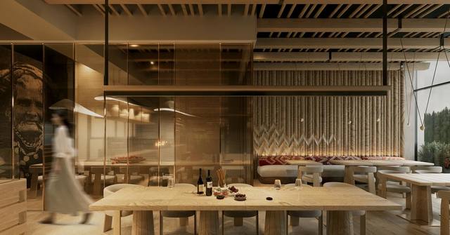 Проект днепровской архитектурной мастерской «Украина Олег и Лиля» гораздо скромнее. Здесь разработали проект украинского ресторана в Буковеле. В мастерской отметили, что ресторан выполнен в традициях украинского национального стиля.