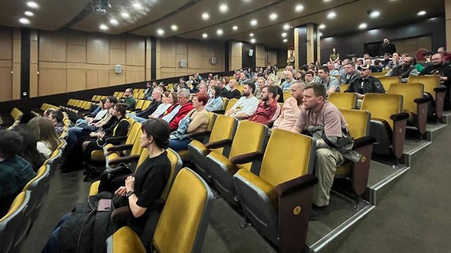 На мероприятие в Днепре пришли более 50 человек. Среди зрителей – военнослужащий Борис, который служит в бригаде "Хартия". Мужчина рассказал: узнал в кадре своих побратимов.