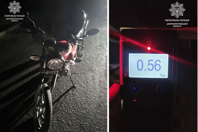 З’ясувалось, що керує транспортним засобом неповнолітня особа. Під час спілкування з хлопцем поліцейські помітили у нього ознаки алкогольного сп’яніння та запропонували освідування. Той погодився. Результат — 0.56 проміле алкоголю у крові.