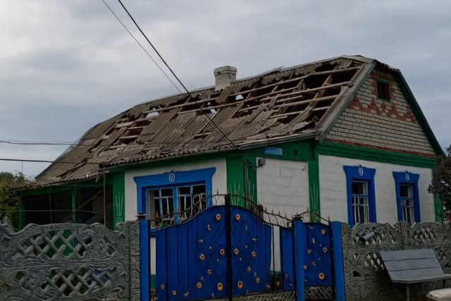 Била русская армия и по Великомихайловскому обществу. Применила беспилотник. Изуродован частный дом. Люди уцелели.