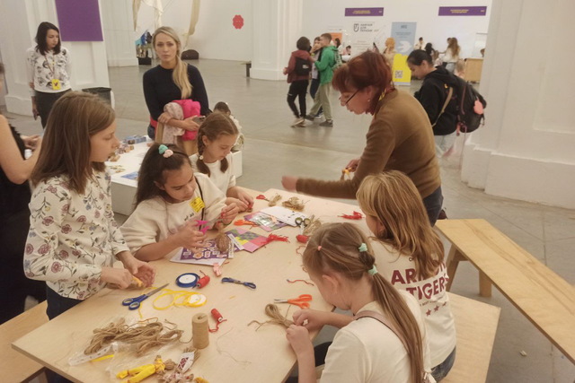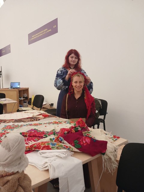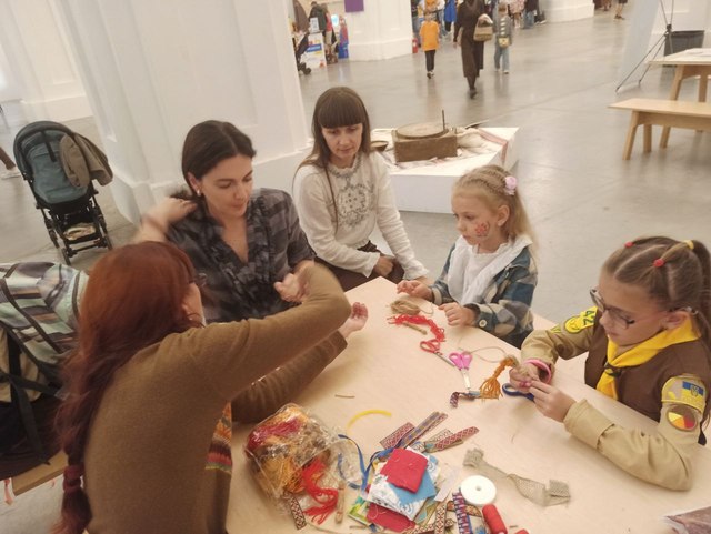 Дівчата, разом з відвідувачами фестивалю, три дні поспіль виготовляли ляльки-мотанки та вчилися правильно зав'язування хустки.