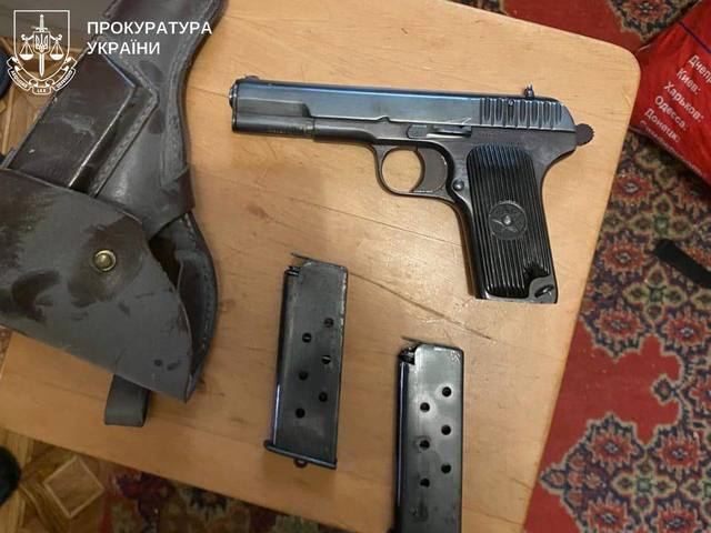 Кроме того, следствием задокументировано, что в марте 2022 года подозреваемый незаконно присвоил боевой пистолет системы Токарева и 25 патронов к нему, которые хранил без предусмотренного законом разрешения. Во время санкционированного обыска в его доме правоохранители изъяли оружие и боеприпасы.