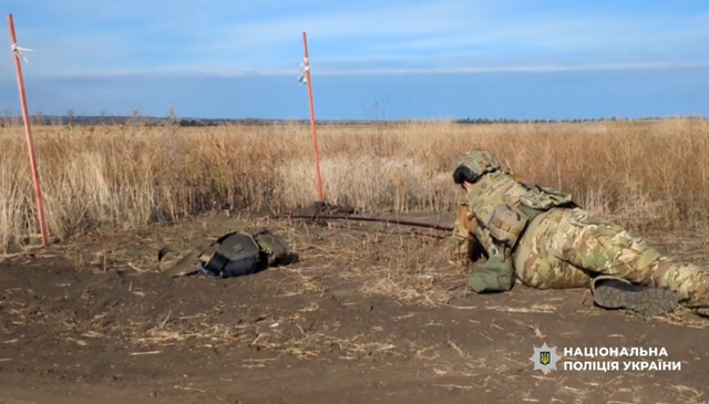 Полицейские шаг за шагом обследуют прифронтовые территории и делают землю безопасной для пользования людьми.