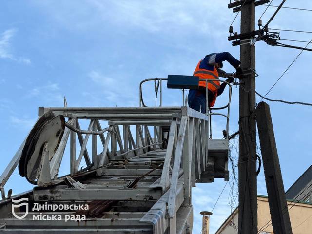 "Мы демонтируем старую кабельную линию и 31 светильник, которые уже исчерпали срок эксплуатации. Устанавливаем новые современные LED-светильники и кабельную линию. Всего будет смонтирован 31 светильник, 31 кронштейн и проложено 1085 метров кабеля из самонесущей изолированной проволоки. Сегодня, 8 октября, начали работы, а завершить планируем до конца месяца. Аналогичные обновления продолжаются по всему городу", - рассказал начальник эксплуатационно-технического района № 3 КП "Горсвет" Днепровского городского совета Олег Коротушенко.