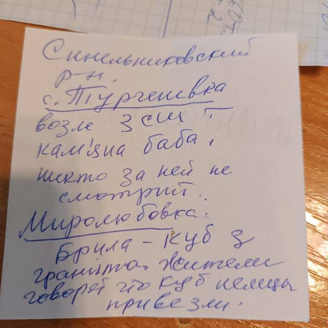 «Історія, котра нині успішно завершилась, почалась з маленького папірчика з трьома пунктами тексту.Його, той папірчик, до відділу археології принесла Людмила Лебедєва (вона в музеї відповідає за комунікацію з музеями області). А вже співробітниці відділу попросили вмотивованих студентів (Кирила, Костю, Валерія, Влада і Настю) з'їздити в село, подивитись на статую.