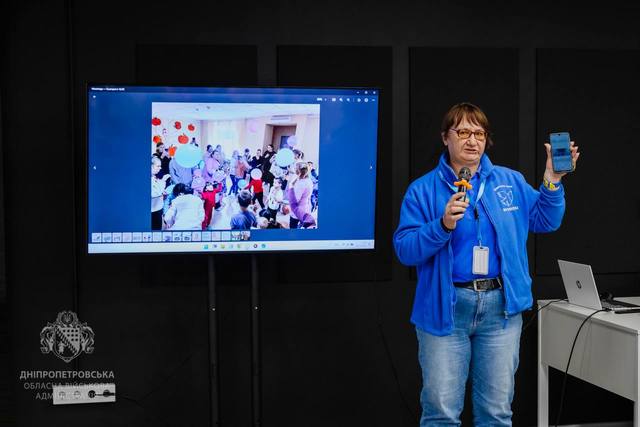Нашлось место и интересному интерактиву. Каждый мог выбрать в фотогалерее своего телефона некую знаковую фотографию, которая отображает прикосновение поддержки. Показать изображение залу и рассказать о нем. Далее по желанию поделиться в соцсетях с хэштегом #тиякпідтримка.