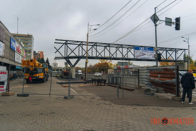 В Днепре на Слобожанском проспекте начали монтаж надземного перехода.