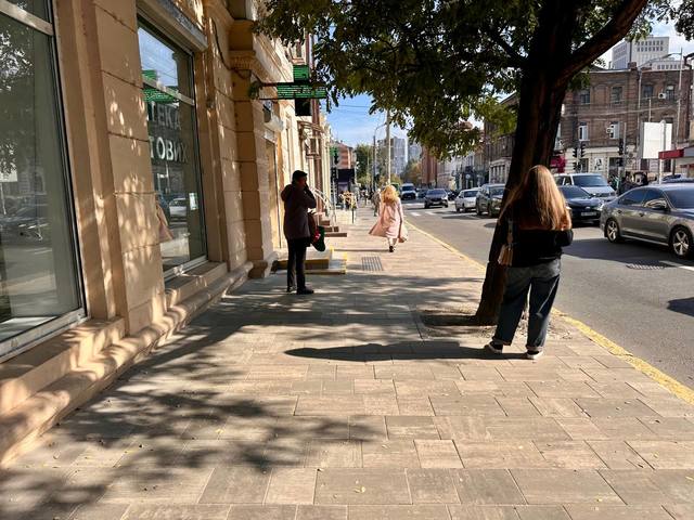 Но оно и не сильно надо, учитывая небольшую ширину тротуара и сильно выступающие крыльца, отмечает автор блога Urban Dnipro Руслан Ширинов: