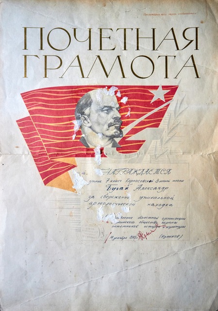 Хлопці перевезли незвичайну «кам’яну бабу» до села та повідомили про знахідку. Співробітники Дніпропетровського історичного музею виїхали на місце події. За виявлення Керносівського ідола – унікальної пам’ятки доби бронзи, коли людина вже опанувала ливарне ремесло, – Дніпропетровське обласне товариство охорони пам’яток нагородило хлопців цінними призами та грамотами (звичайно, із зображенням божества комуністичної доби – В.І.Леніна). А трохи згодом учні отримали надзвичайний досвід участі в справжніх археологічних розкопках…