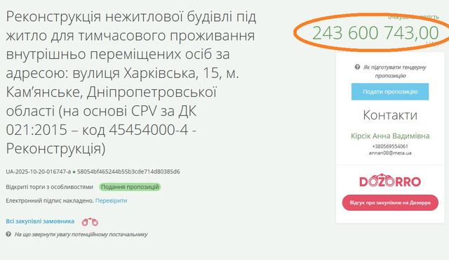 В системе Прозорро объявлен соответствующий тендер, с которым можно ознакомиться здесь.