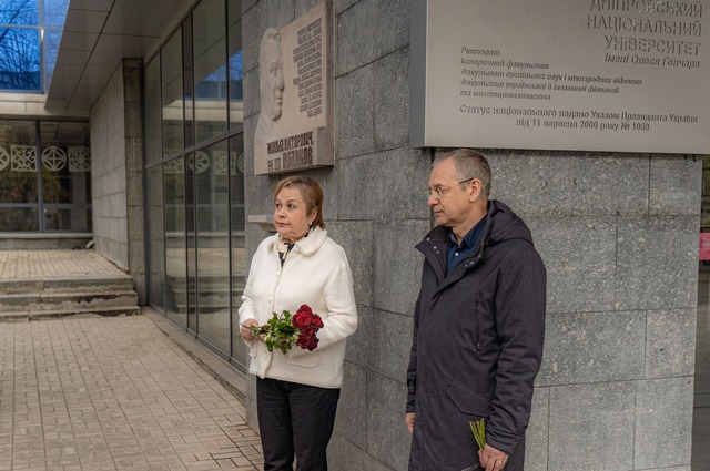 Памятный знак известному ученому, бывшему ректору ДНУ имени Гончара установлен на корпусе №1 университете, где он много лет проработал.