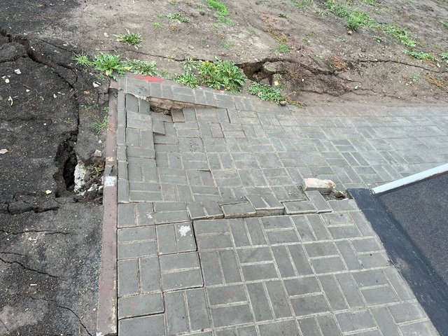 В Кривом Роге на территории двух подземных школ после ливня образовались провалы: кое-где земля просела под брусчаткой и покрытием на стадионе.