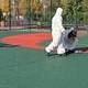 В сквере «Западный» идет ремонт спортивной многофункциональной площадки. Работы выполняют, чтобы развивать спортивную инфраструктуру даже в самых отдаленных районах города.
