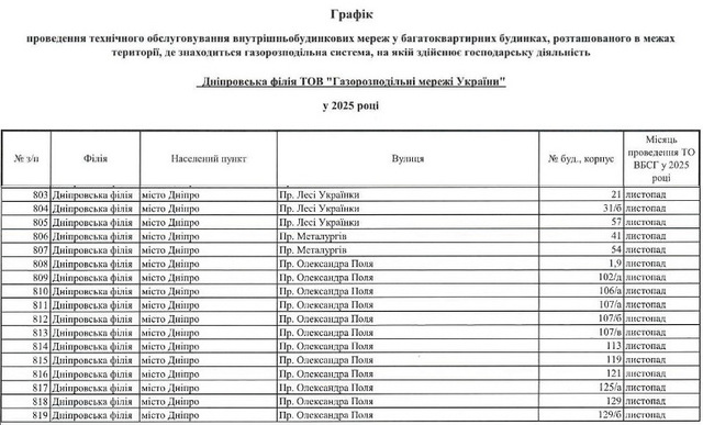 У листопаді «Газмережі» обстежать внутрішньобудинкові системи газопостачання у 63 багатоквартирних будинках Дніпра.