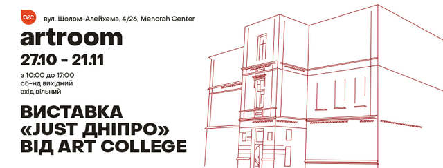 Виставка «just Дніпро» від «Art College» буде експонуватись по 21.11, вул. Шолом - Алейхема, 4/26, Menorah Center Арт-простір artroom з 10:00 до 17:00 (сб-нд вихідний)».