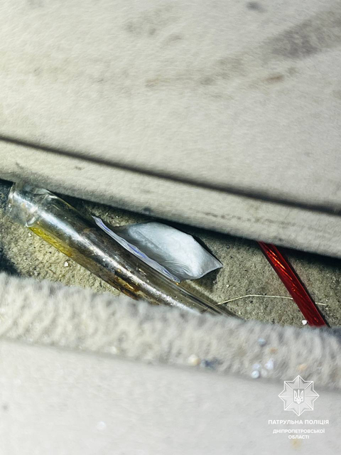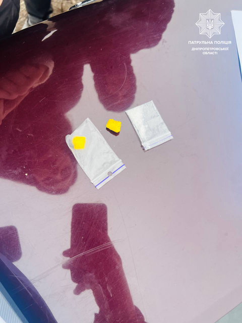 А у нього в кишені патрульні виявили два згортки в ізоляційній стрічці з речовиною, схожою на наркотичну. Ще один пакет виявили під сидінням в авто. На місце прибула слідчо-оперативна група, яку вилучила вказані сліп-пакети у присутності понятих.