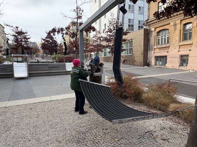 Кроме того, выполнен ремонт детского гамака, чтобы зона отдыха оставалась комфортной и безопасной для самых молодых жителей.