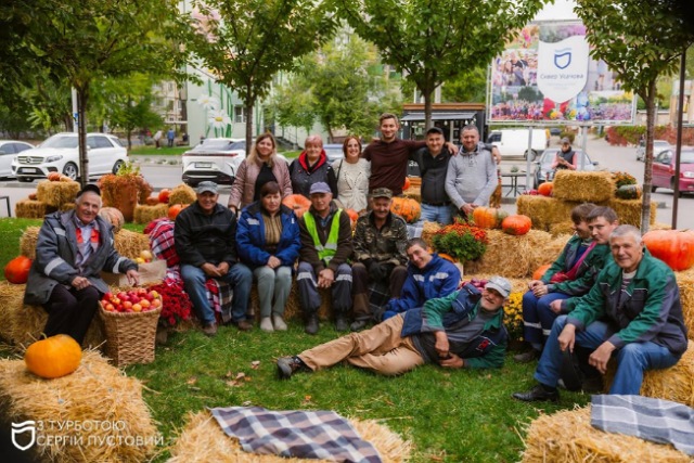 Этой осенью сквер Усачёва на левобережье Днепра красиво украсили сеном, тыквами и осенними цветами.