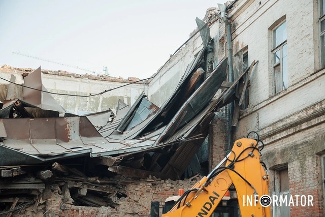 Из-за этого заезд на улицу со стороны проспекта Дмитрия Яворницкого перекрыла полиция. По состоянию на 14:34, шла ликвидация последствий обвала крыши. Здание находится в историческом центре города.