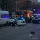 Автомобили двигались в направлении Криворожской улицы. Машины получили значительные повреждения. У обоих автомобилей практически уничтожены передние части. На дороге лежат обломки.