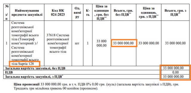 Очікувана вартість закупівлі склала 33 760 000 гривень: 20 000 000 гривень з місцевого бюджету та 13 760 000 гривень – кошти НСЗУ.