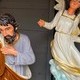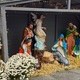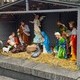 Деревянный домик с гирляндами и фигурами святой семьи привлекает внимание горожан и становится популярным местом для фото.