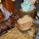 В композиции – Мария, Иосиф, младенец Иисус, ангел, волхвы и животные. Вертеп окружен белыми хризантемами и соломой, что делает локацию еще более уютной.
