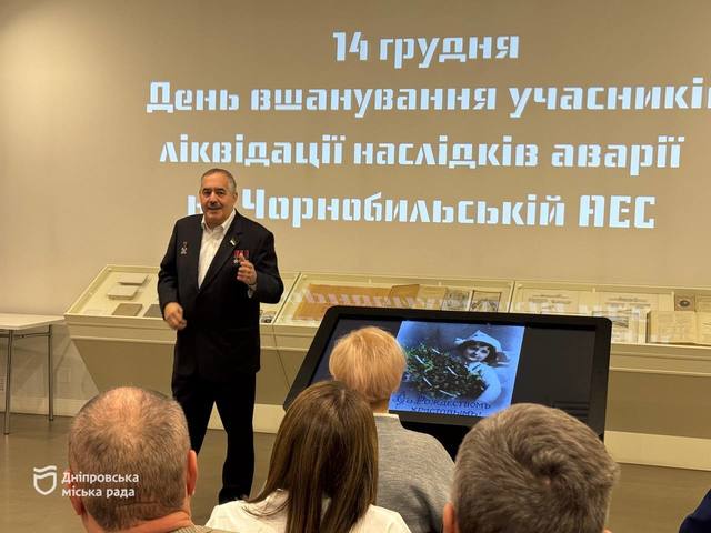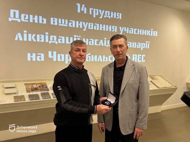 В Музее истории Днепра ко Дню чествования участников ликвидации последствий аварии на Чернобыльской атомной электростанции организовали встречу с чернобыльцами-ликвидаторами. Во время мероприятия приглашенным от мэрии вручили памятные медали «Защитник Отечества», «За заслуги перед городом» и благодарности городского головы.