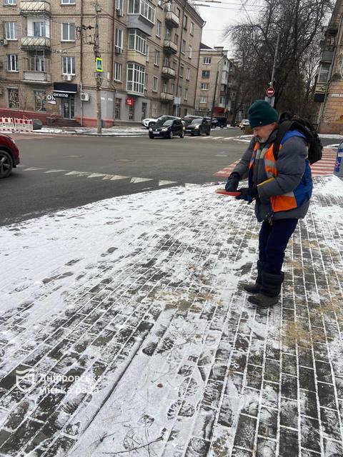 По состоянию на утро все основные автодороги города расчищены и обработаны. Работы по уборке тротуаров и пешеходных переходов продолжаются.